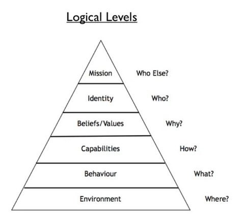 Father of self-development, Napoleon Hill highlighted the importance of the environment as a determining factor for success. Following similar logic, Dilts Pyramid illustrates the different levels of thinking at which we experience the world. The concept of neurological levels on learning, communication, and change mentions that to shift our reality, we must start with our environment.